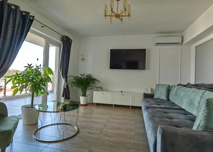 The spacious 100 m^2 Luxury Apartment Private Parking Self Check-In54 Craiova is 25 minutes on foot from Prefecture Square Craiova and offers a patio with a dining table. The 2-bedroom apartment is 25 minutes' walk from Jean Mihail Palace.